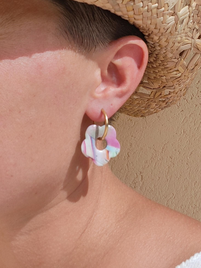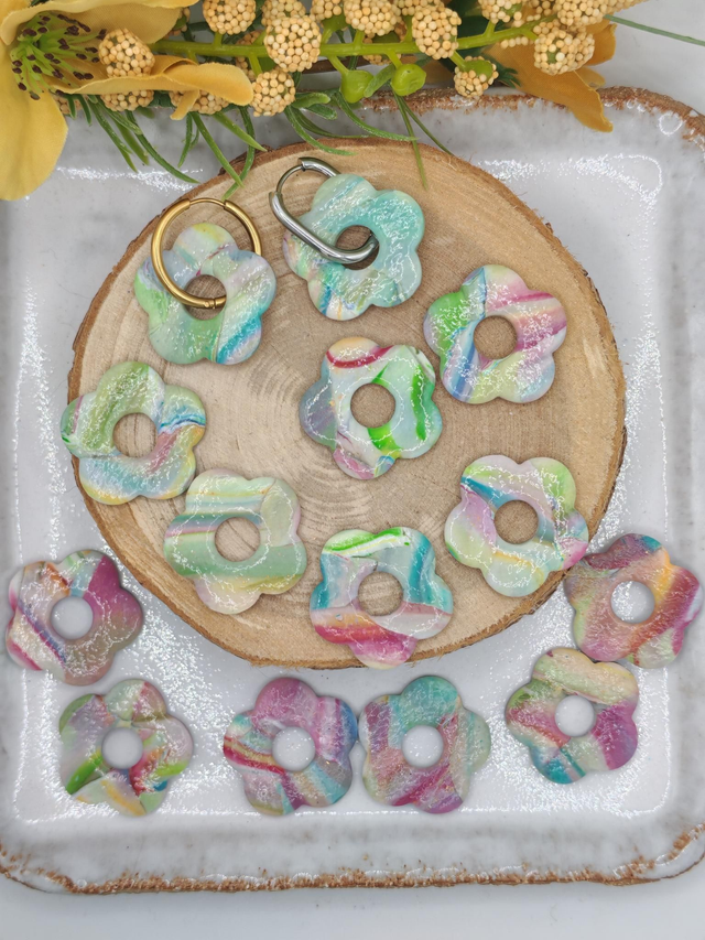Ces fleurs Amaya uniques sont nĂ©es dâun mĂ©lange crĂ©atif de trois chutes de pĂątes : blanc/Bordeaux/rose/orange, blanc/bleu et blanc/vert. Le rĂ©sultat ? Un motif artistique et multicolore, vibrant et lumineux, qui rend chaque paire absolument unique.