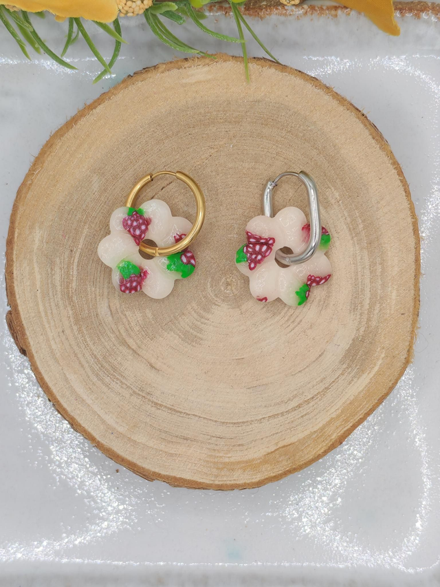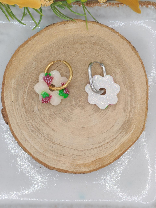 Ces petites fleurs Nina mettent Ă lâhonneur les vignes avec un motif raisin blanc et Bordeaux dâun cĂŽtĂ©, et un cĂŽtĂ© pailletĂ© blanc de lâautre. Leur format lĂ©ger est idĂ©al pour les enfants ou pour celles qui aiment les bijoux fins et lumineux. Deux styles en une seule paire, pour varier au grĂ© des envies.