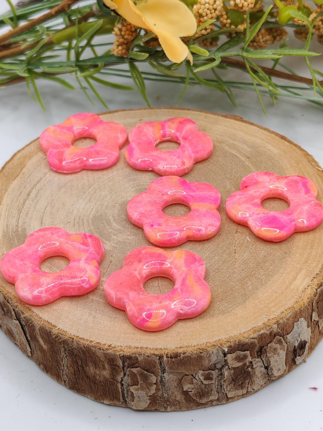 Douces et féminines, les fleurs Amaya marbré rose apportent une touche élégante et poétique à vos bijoux. Chaque fleur est façonnée à la main en pâte polymère, avec un effet marbré unique dans des tons roses tendres. Le tout est recouvert de résine UV à l’avant et à l’arrière pour une finition brillante et une meilleure résistance.