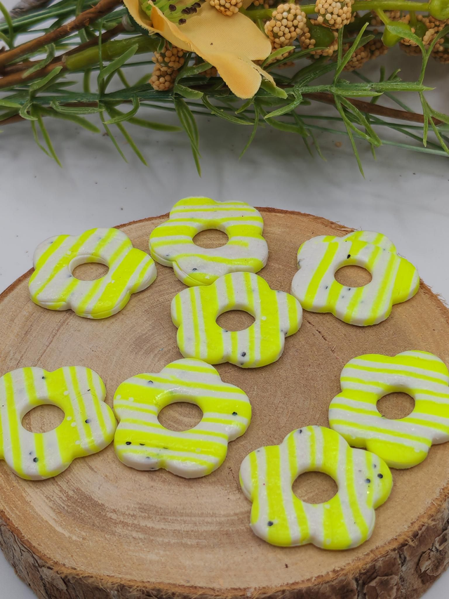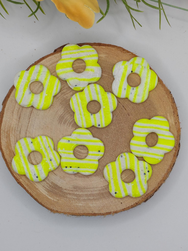 ⚡🌼 Fleurs Amaya – 5 pétales rayées jaune fluo & blanc avec paillettes noires