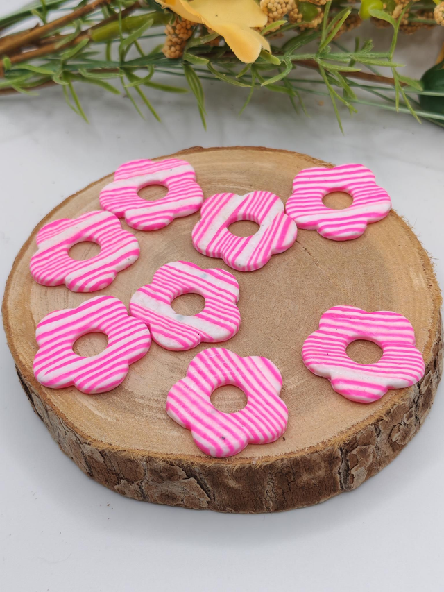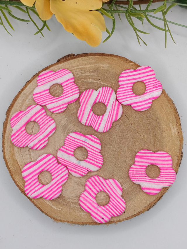 💖✨ Fleurs Amaya – 5 pétales rayées rose fluo & blanc avec paillettes noires