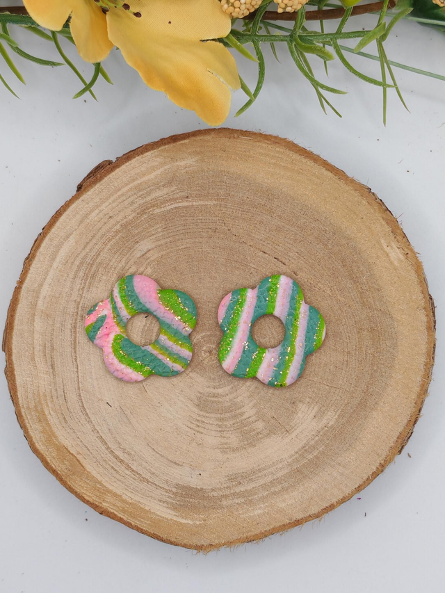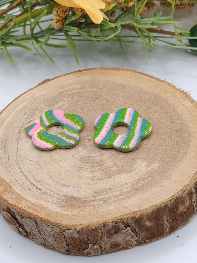 💚🌸 Fleurs Amaya – 5 pétales rayées vert & rose