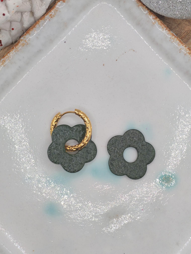 Fleurs Amaya vertes effet cuir