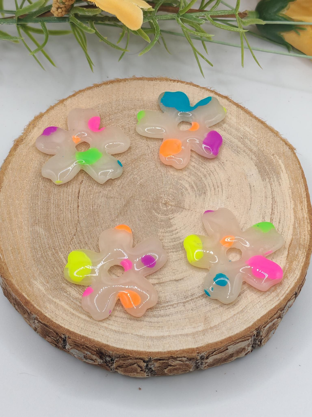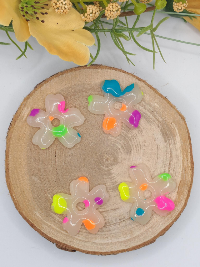 Des couleurs éclatantes sur une base translucide : les fleurs Iles Transparent Fluo sont faites pour illuminer vos looks d’été ! Ce mélange de tons fluo vibrants, appliqués sur une base transparente, crée un effet frais, fun et unique. Chaque fleur est façonnée à la main et protégée par une résine UV pour garantir solidité et brillance.