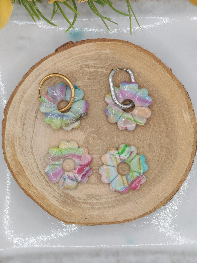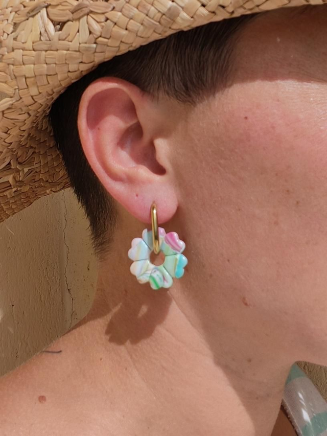 Ces fleurs Leady se distinguent par un mélange unique de teintes vives et lumineuses, pour un rendu artistique et multicolore. Chaque paire est une création originale qui apporte éclat et singularité à vos oreilles.