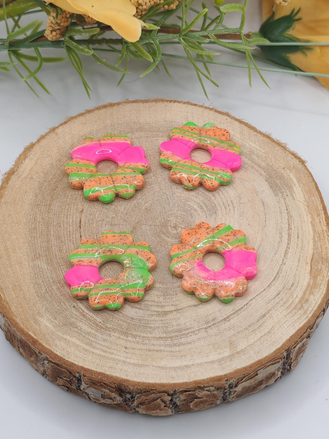 Pour un look audacieux et vitaminé, adoptez les fleurs Leady fluo au mélange éclatant de vert, orange et rose. Ces fleurs pleines d’énergie apportent une touche fun et décalée à vos tenues. Chaque pièce est modelée à la main en pâte polymère, puis recouverte d’une résine UV pour assurer résistance et brillance.
