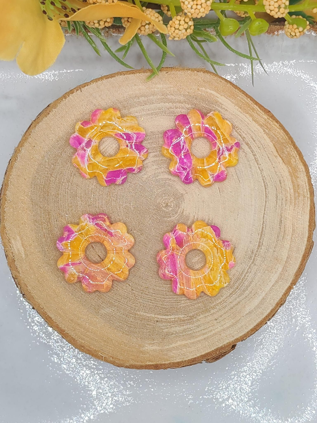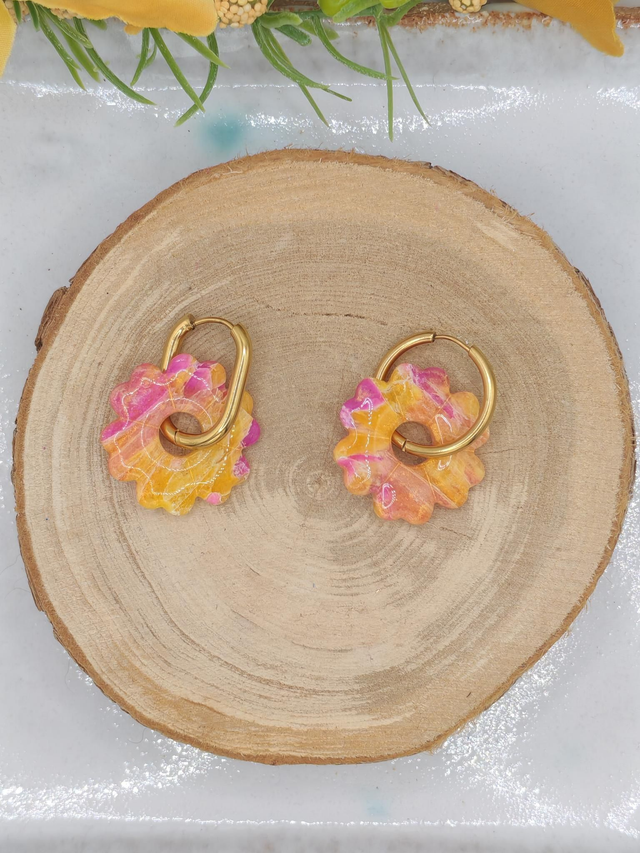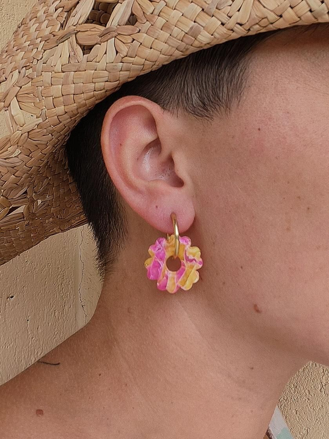 Ces fleurs Leady affichent un magnifique effet marbrĂ© violet et jaune, mĂȘlant intensitĂ© et Ă©clat lumineux. Leur design artistique et audacieux en fait un bijou unique, parfait pour illuminer vos oreilles avec Ă©lĂ©gance et originalitĂ©.