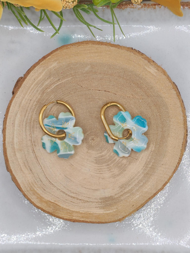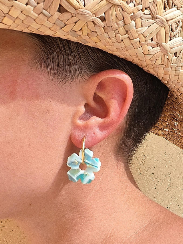Ces fleurs Mohana dévoilent un magnifique effet vitrail bleu, jouant avec les reflets et la lumière pour un rendu éclatant. Élégantes et originales, elles apportent une touche artistique et lumineuse à vos oreilles.