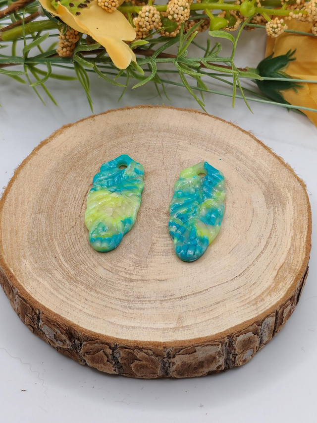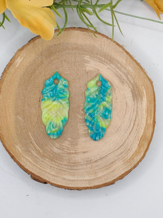 Des plumes tout en légèreté avec un duo de couleurs rafraîchissant : du bleu clair et du jaune vif qui se mélangent sur une base transparente. Une création lumineuse et pleine de peps pour réveiller vos tenues estivales. Chaque plume est fabriquée à la main en pâte polymère et recouverte de résine UV pour une brillance subtile et une belle tenue dans le temps.