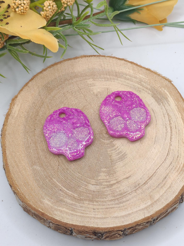 Un mélange d'audace et de mystère ✨ Ces têtes de mort violettes sont sublimées par des paillettes qui captent la lumière à chaque mouvement. Idéales pour un look original et scintillant, elles apportent une touche rock et glamour à vos oreilles. Réalisées en pâte polymère et protégées par une résine UV, elles sont légères et résistantes.