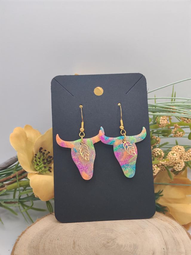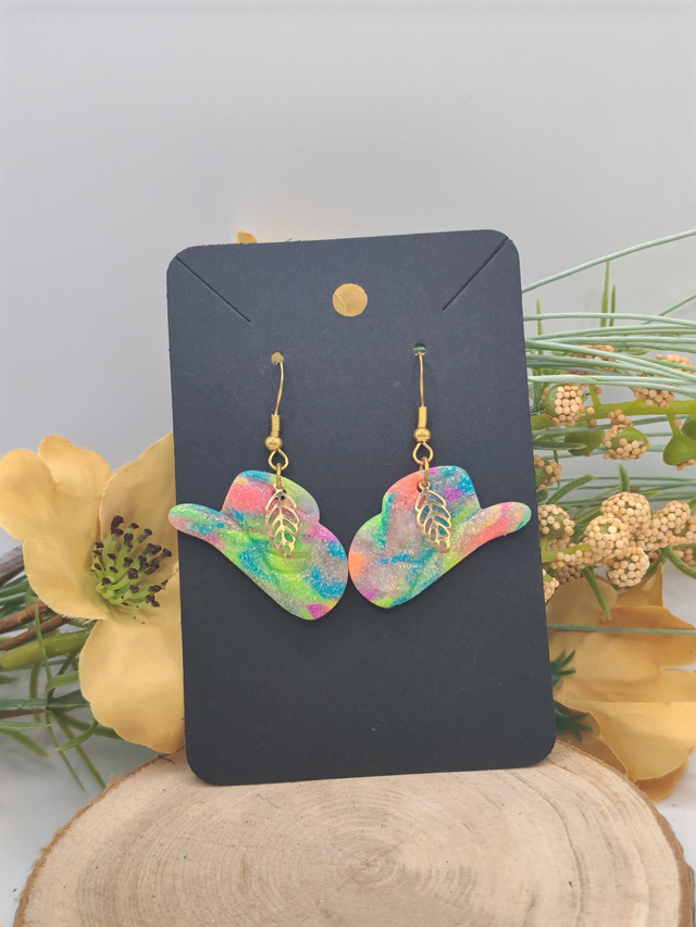 Adoptez un look frais et lumineux avec ces boucles d’oreilles western en pâte polymère faites à la main, au style transparent fluo qui apporte une touche moderne et pétillante à votre tenue.