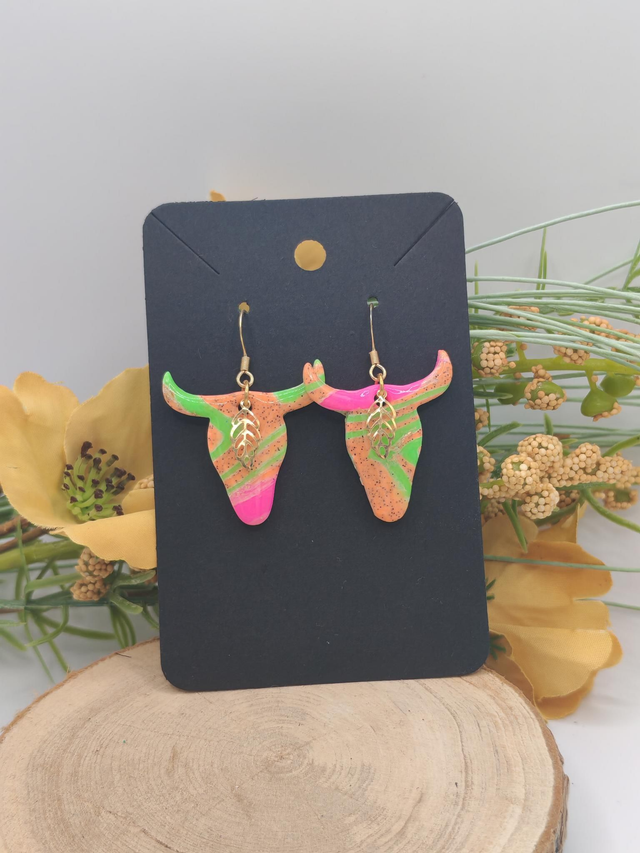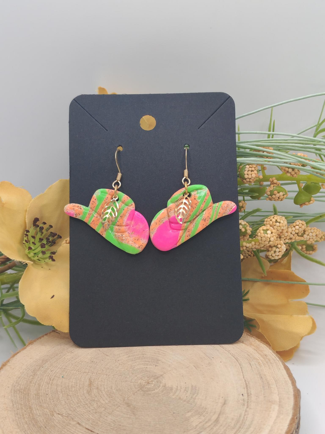 Apportez une explosion de couleurs avec ces boucles d’oreilles western en pâte polymère faites à la main. Le mélange dynamique d’orange, vert et rose fluo apporte une touche fun, énergique et originale à votre style.