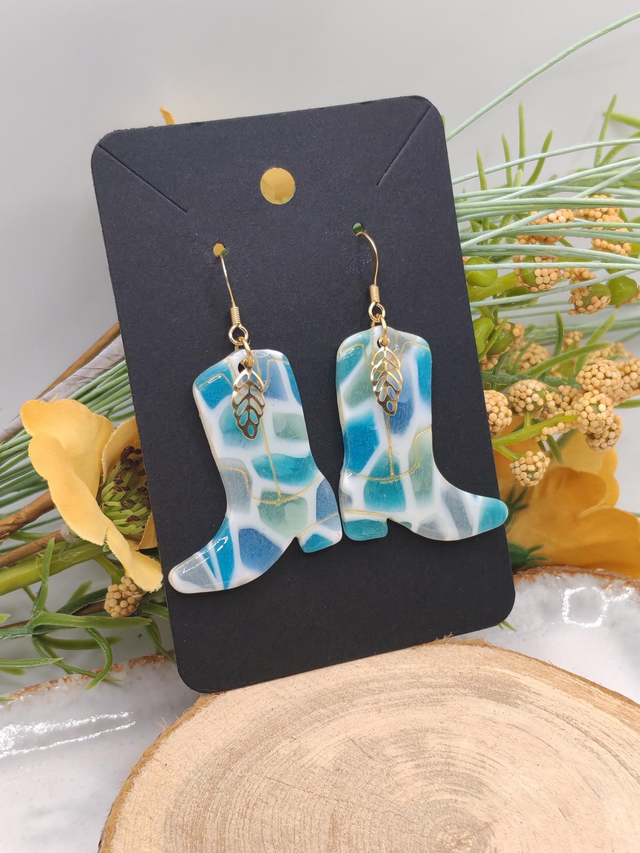 Audacieuses et originales, les boucles Bottes Western Effet Vitrail Bleu arborent un magnifique effet vitrail mêlant différentes nuances de bleu, pour un rendu lumineux et unique.